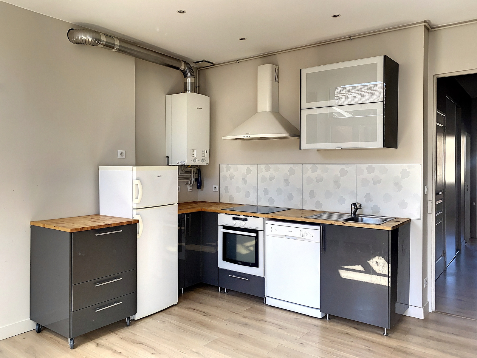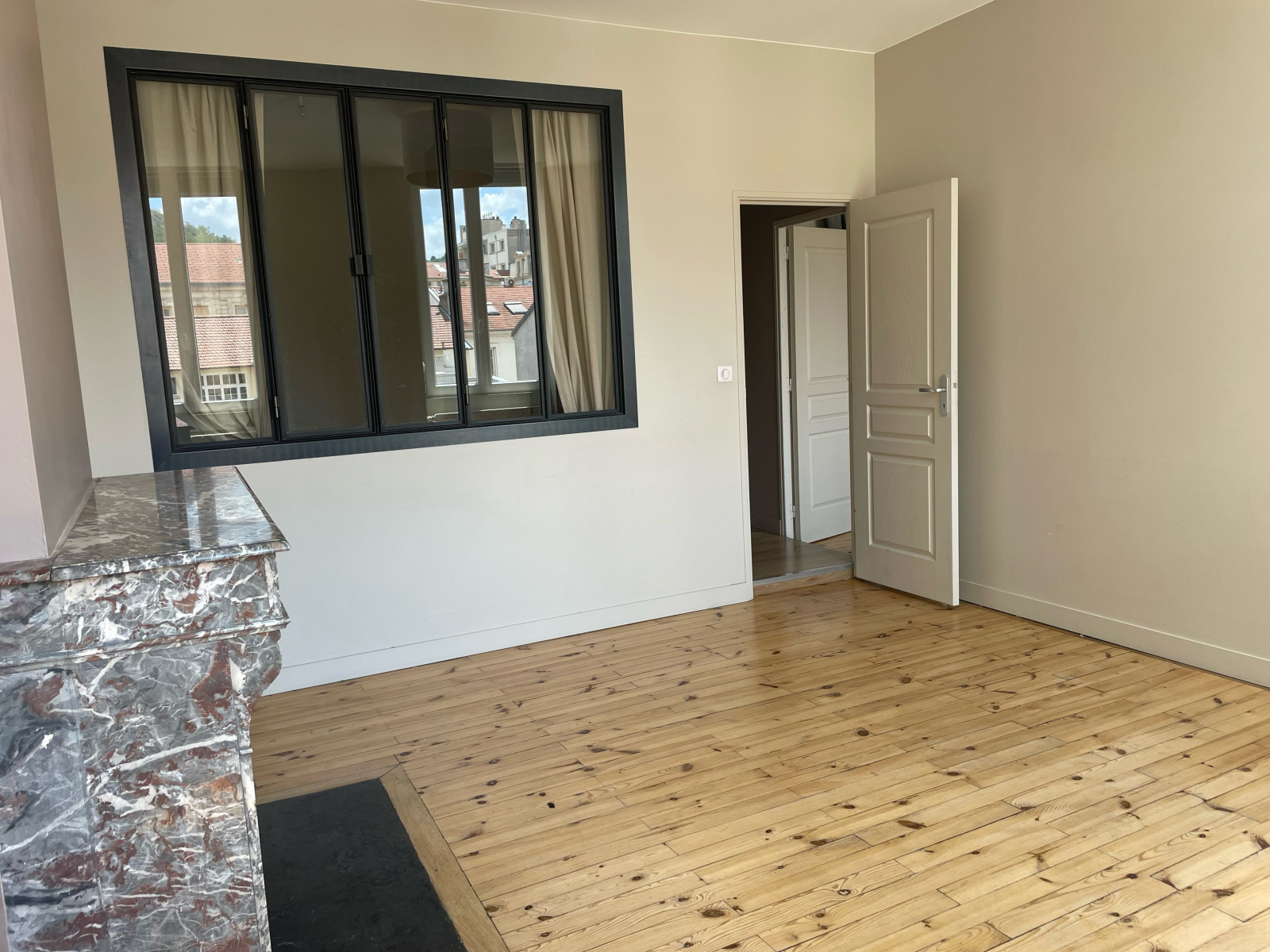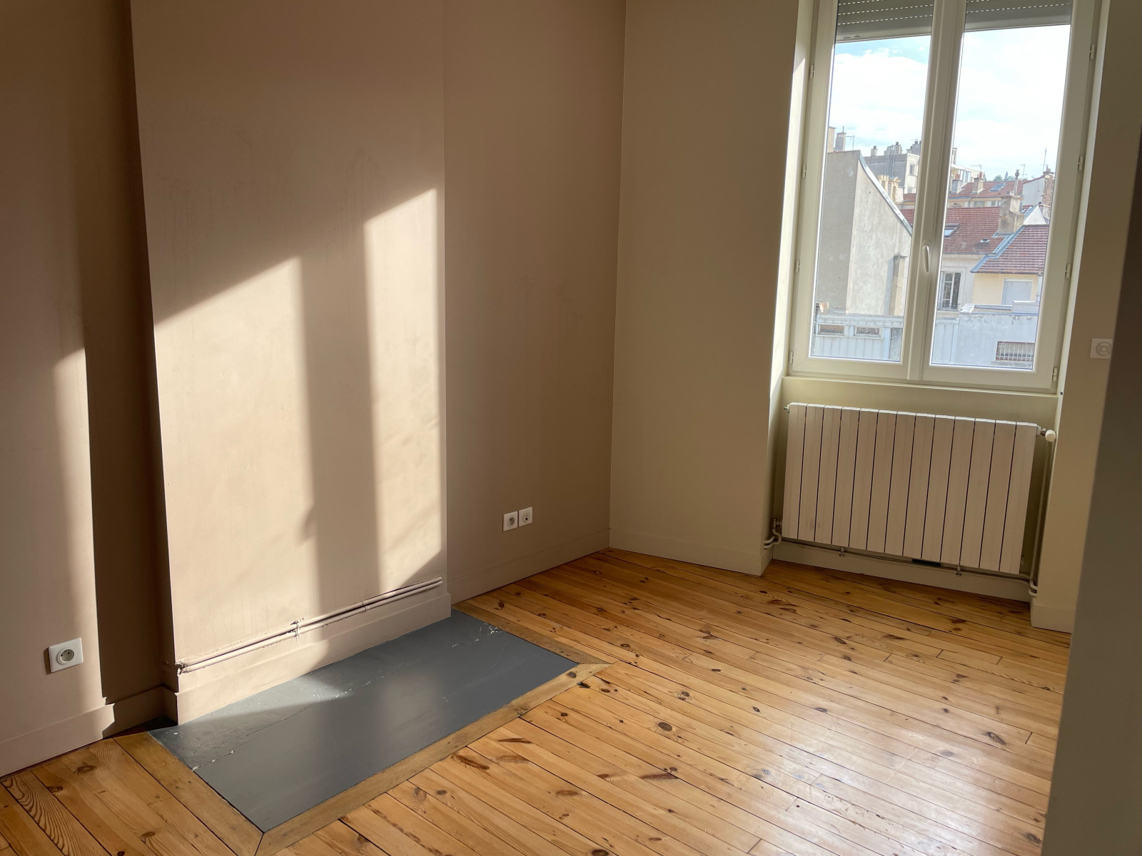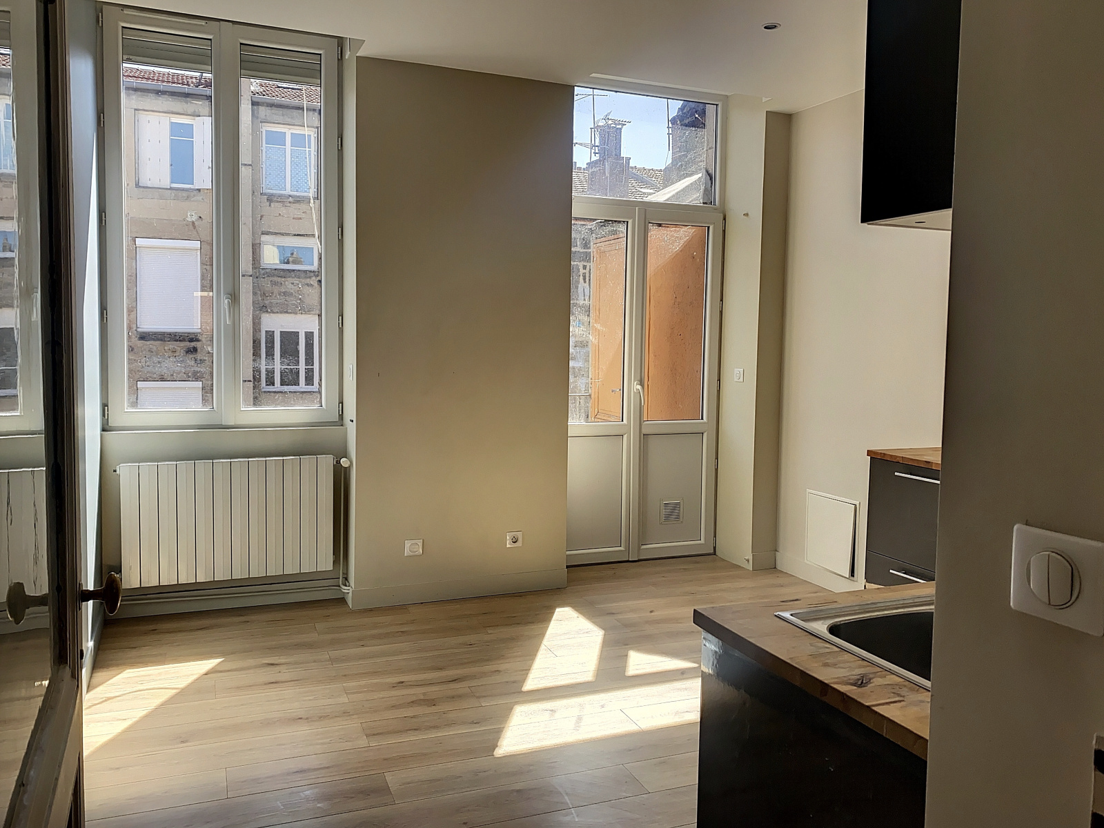 Saint Etienne hyper centre, proche place Jean plotton en dernier étage grand F2 avec aloove de 7 m2 fermée par verrière proposant une cuisine indépendante équipée avec balcon, parfait état, double exposition, volets électrique, rénovation récente, chauffage individuel gaz 95.000€ charges 70€/mois