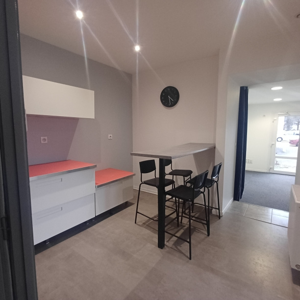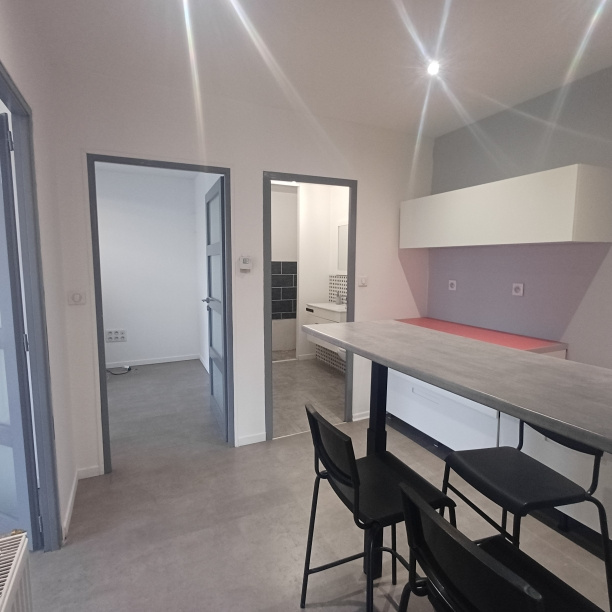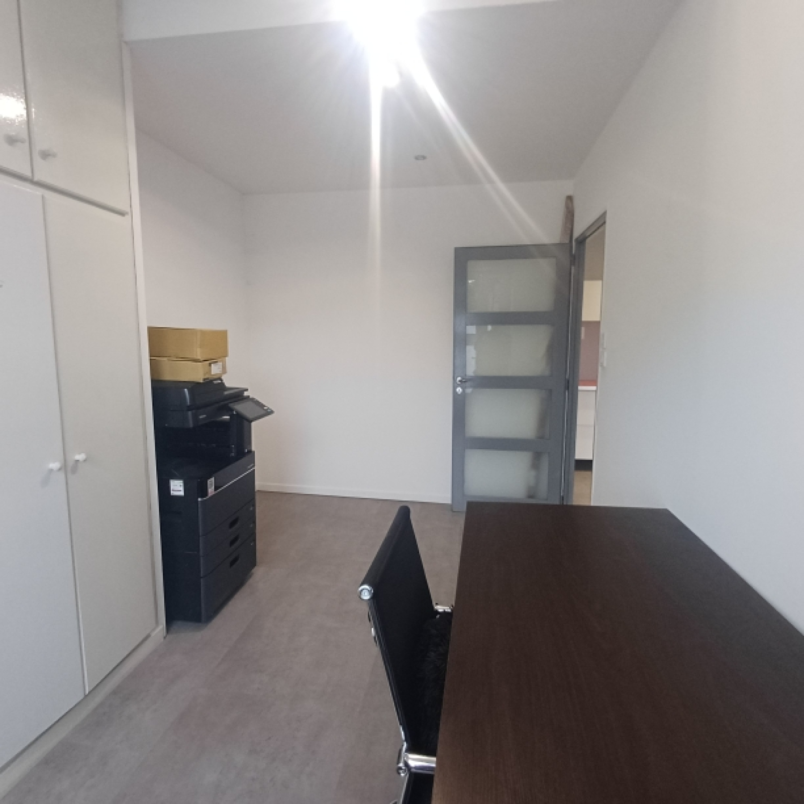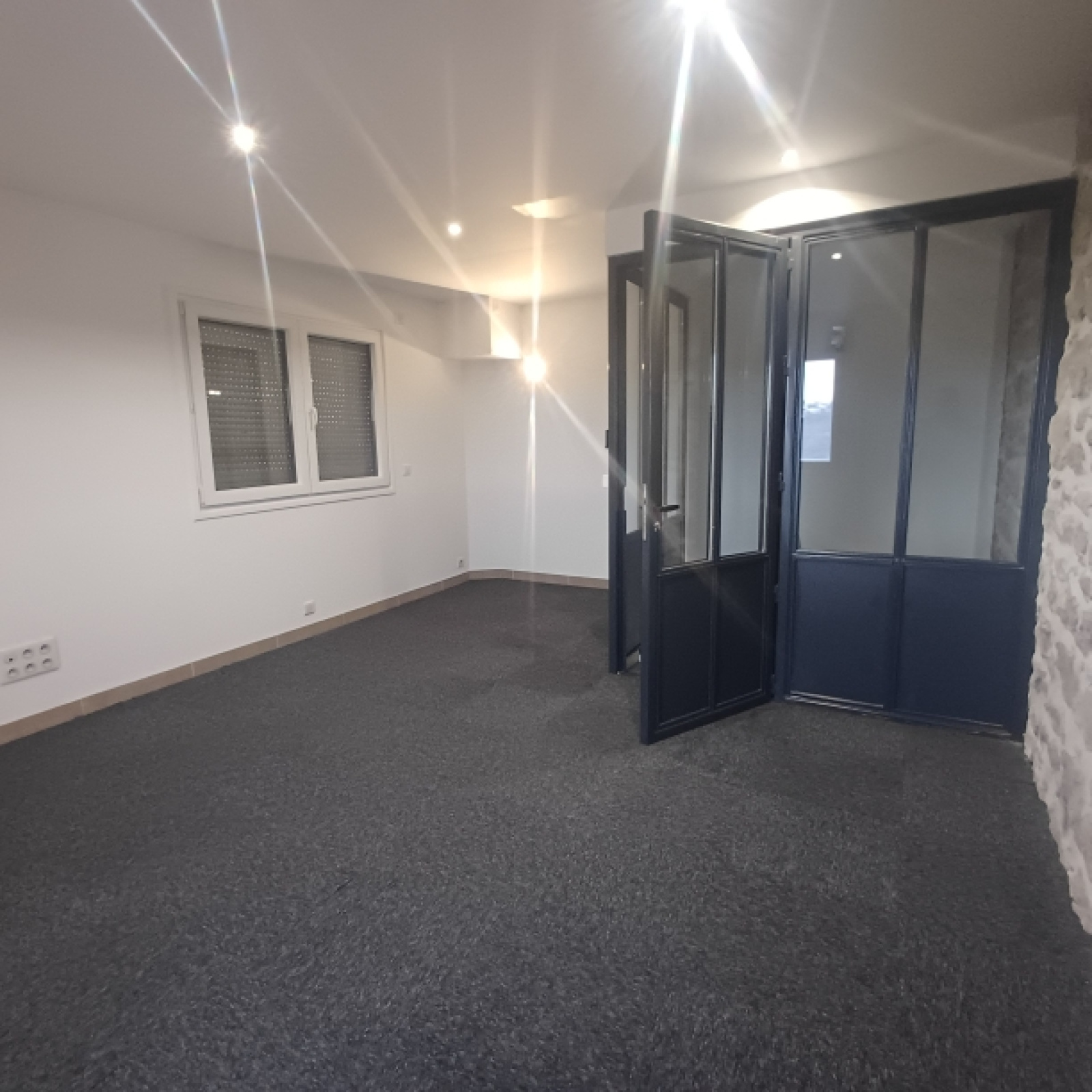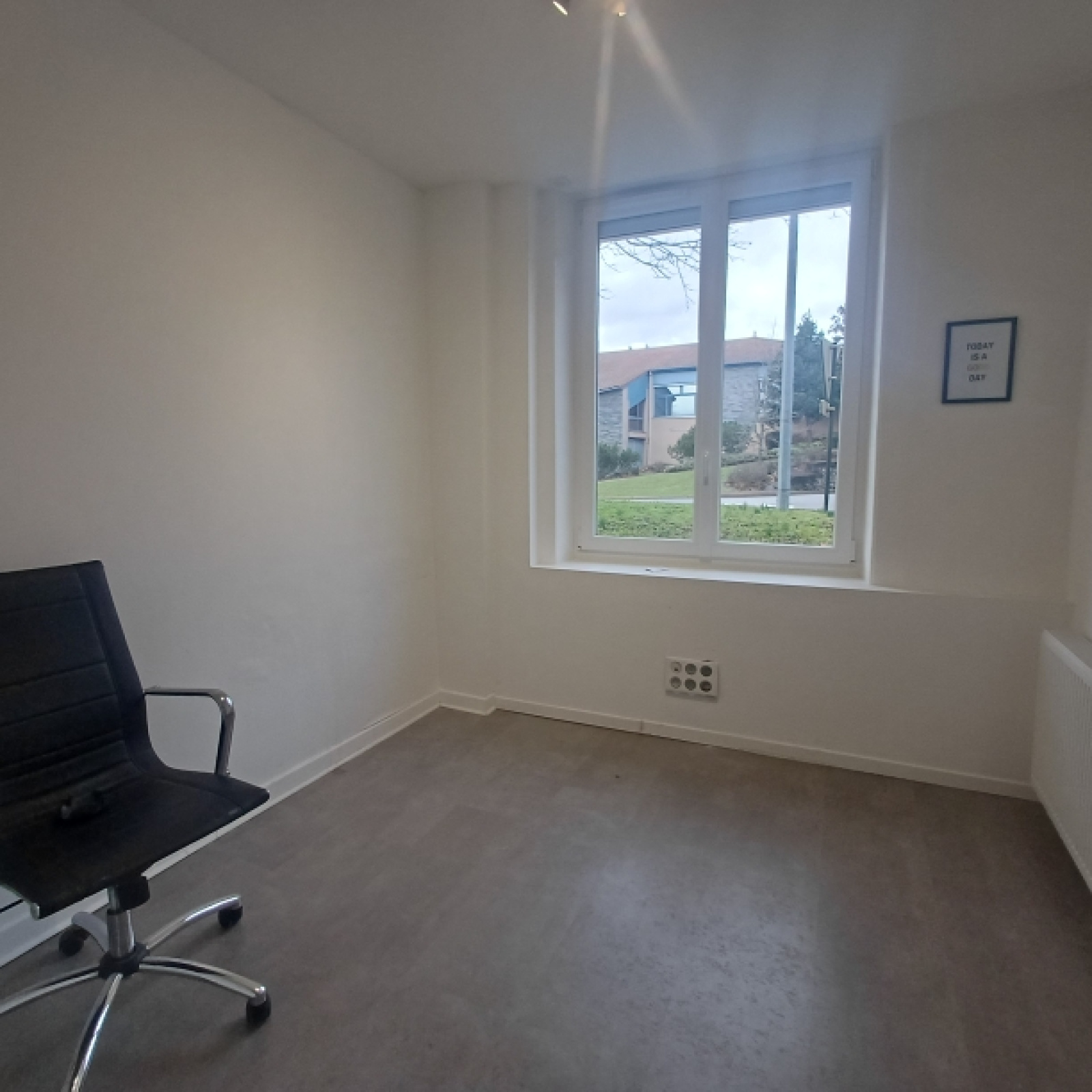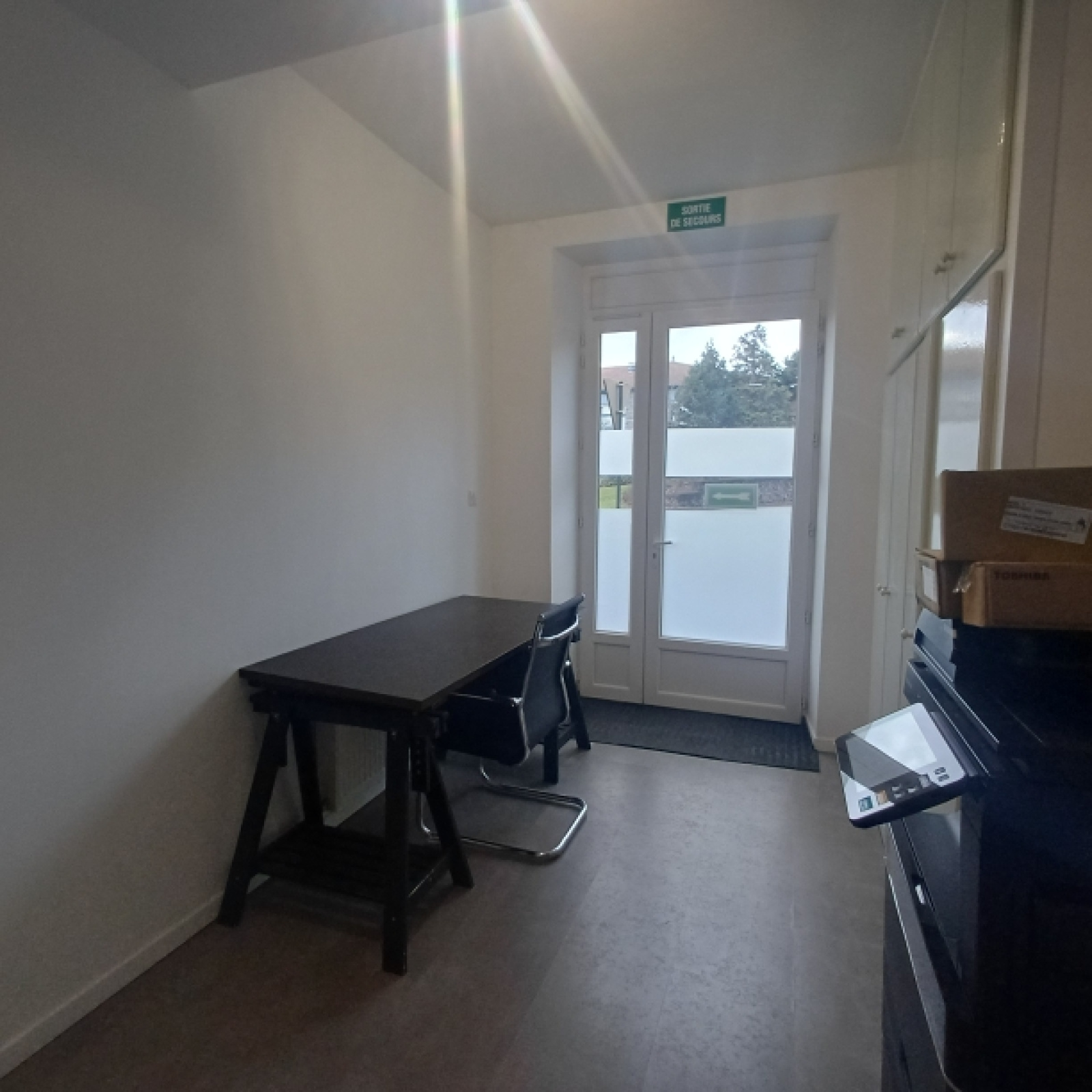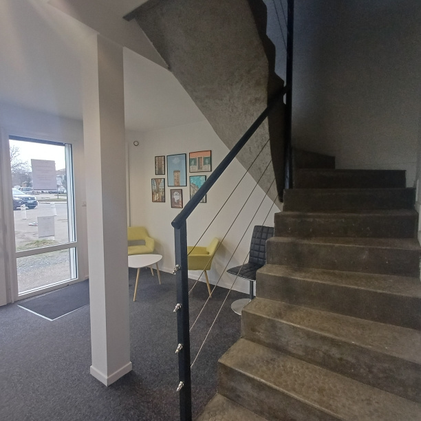 Au rez de chaussée, un accueil de15 m2, une terrasse, une cuisine ouverte, des sanitaires et deux bureau. A l'étage, un vaste bureau de 16 m2.